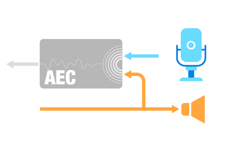 Acoustic Echo Cancellation is achieved with an algorithm designed to remove echoes from the audio input filtered through a microphone. This is beneficial when the device is playing back some audio through its speakers.