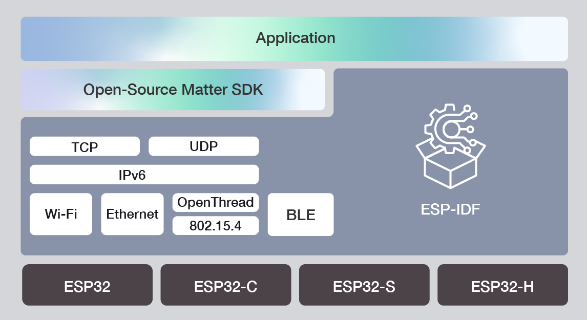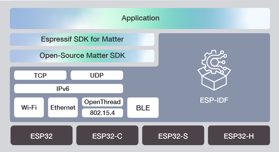 Espressif’s SDK for Matter has been developed over the open-source Matter SDK to provide a simplified API and the required tools for building Matter-compatible devices with Espressif SoCs. This SDK defines periodic releases and support structures that ensure maintaining the in-field devices effectively.